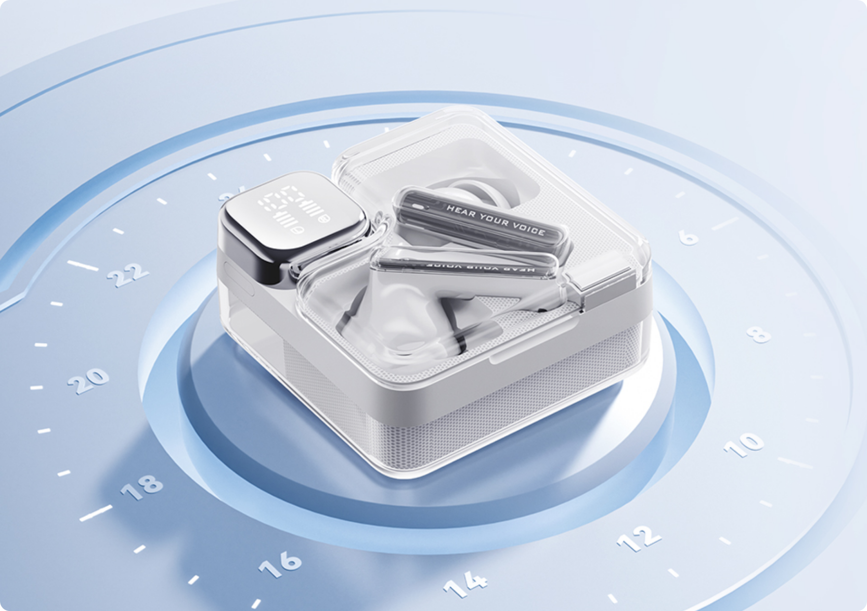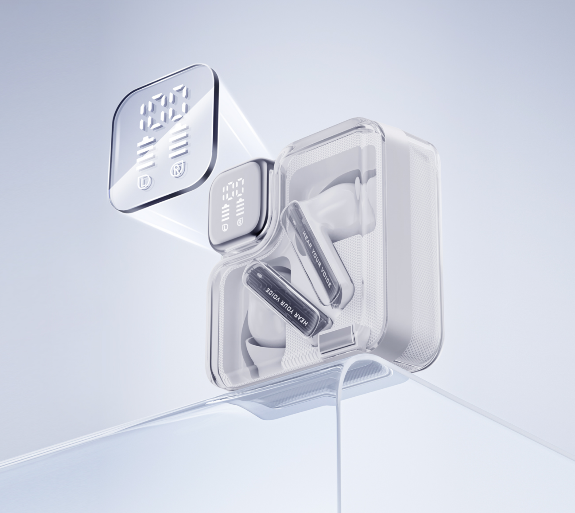 The sleek, fully transparent cyberpunk-style charging case andtech-inspired earbud stems design make OcY MeloBuds Neo afashionable accessory that truly stands out.