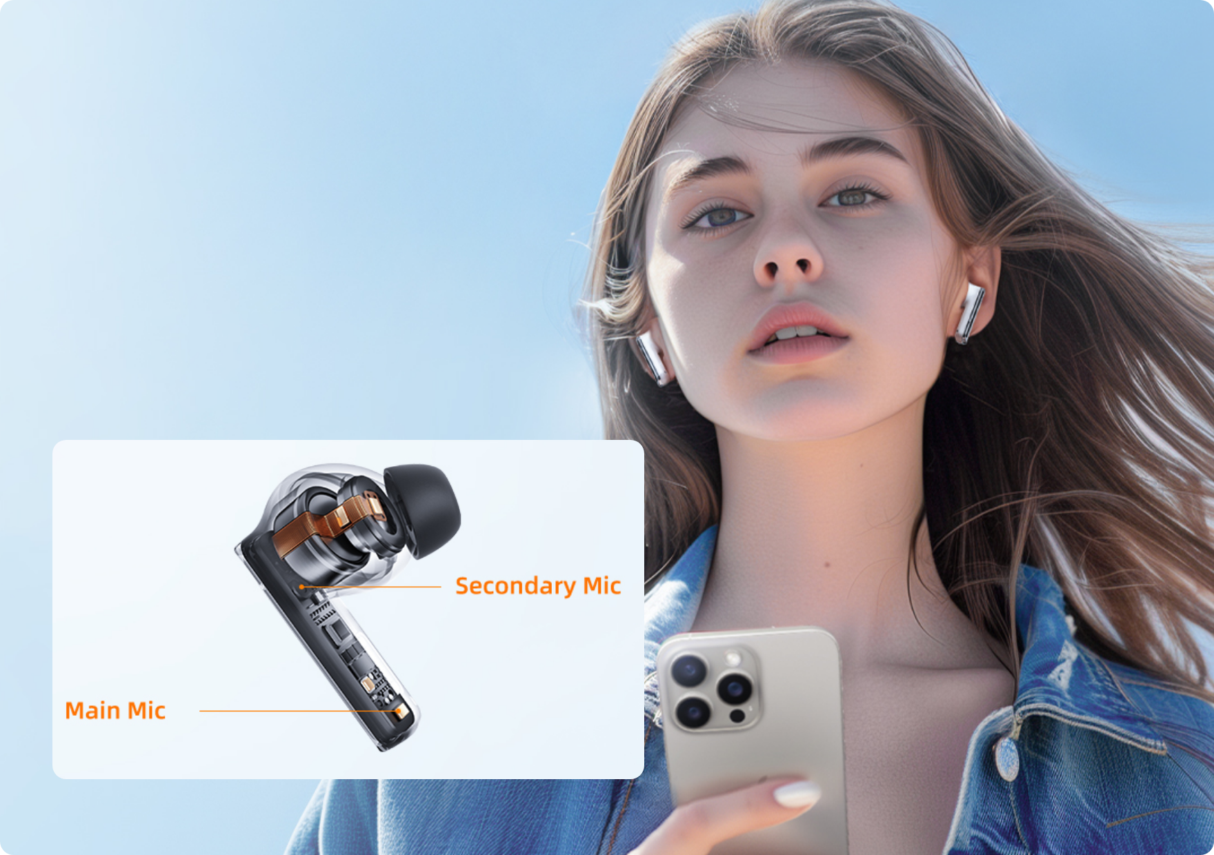 With 4 mics and our innovative Anti-Wind Noise Tech,your voice is picked up clearly amidst ambient soundensuring you're always heard on the other end of thecall.